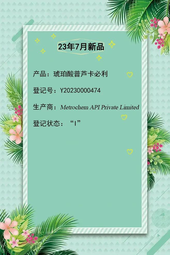我司积极进行原料药审批,几乎每月均有新增批准品种。